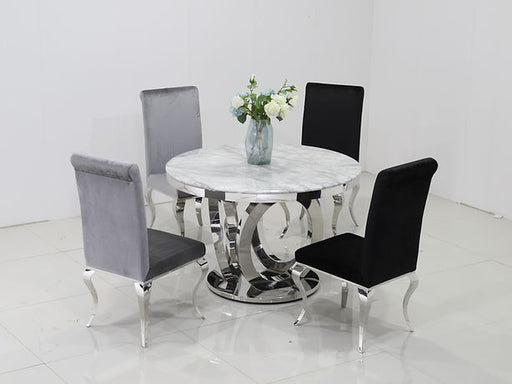 Abby Round Dining Table with Lazy Susan White and Chrome