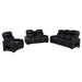 Designed for immersive relaxation, this dual power reclining set combines bold styling with high-tech comfort. Power recline and adjustable power headrests offer personalized positioning, while integrated control panels include USB-A, USB-C, and a home button for effortless use. Blue LED under glow casts a modern glow beneath each piece. With built-in cup holders, storage, and tech-forward features like a Bluetooth speaker and charging console, this set redefines luxury lounging. Key Features: • Dual power reclining sofa set in black faux leather includes power headrests and smooth recline • Each piece features side panels with USB-A, USB-C, and home button functionality • Blue LED under glow adds bold ambiance to the base of each reclining seat • Cup holders built into armrests offer added convenience across all seating pieces • Sofa includes drop-down console with AC outlets, USB ports, and reading lights • Loveseat includes center console with lift-top storage and built-in Bluetooth speaker