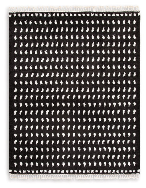 Sink your feet into this modern area rug. Offering a luxurious shag with a woven dot design in black and white, it adds sophistication without sacr...