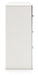 - Matte white finish with subtle replicated wood grain